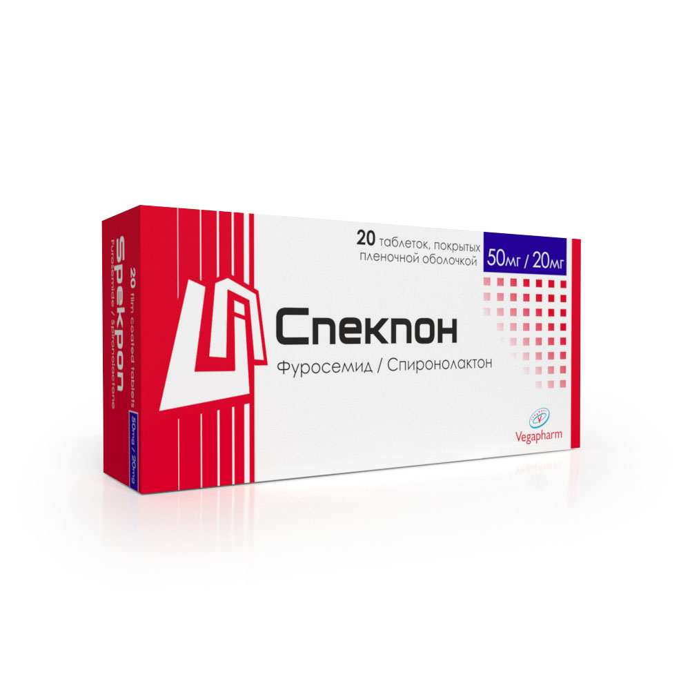 Спекпон содержит калий сберегающий диуретик длительного действия спиронолактон и петлевой диуретик короткого действия фуросемид. Спиронолактон и фуросемид имеют различный механизм и место действия и дополняют друг друга. Поэтому, при приеме препарат создает синергетический эффект суммирования мочегонного свойства.
