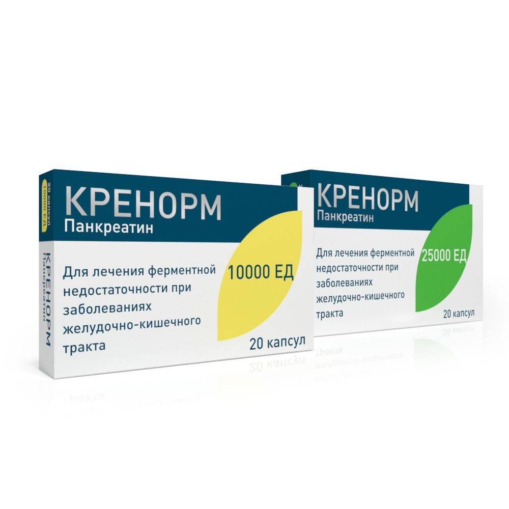 Кренорм — ферментный препарат, улучшающий процессы пищеварения. Компенсирует недостаточность внешнесекреторной функции поджелудочной железы, оказывает протеолитическое, амилолитическое и липолитическое действие.